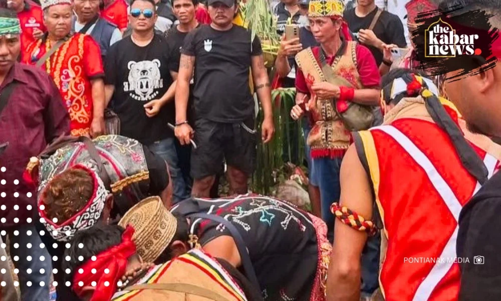 Thekabarnews.com—A traditional ritual took place along the Sosok–Sanggau National Road in Dusun Moling, Sanggau Regency’s Tayan Hulu District, West Kalimantan, on February 18. There were hundreds of people from different Dayak community organizations during the ritual.