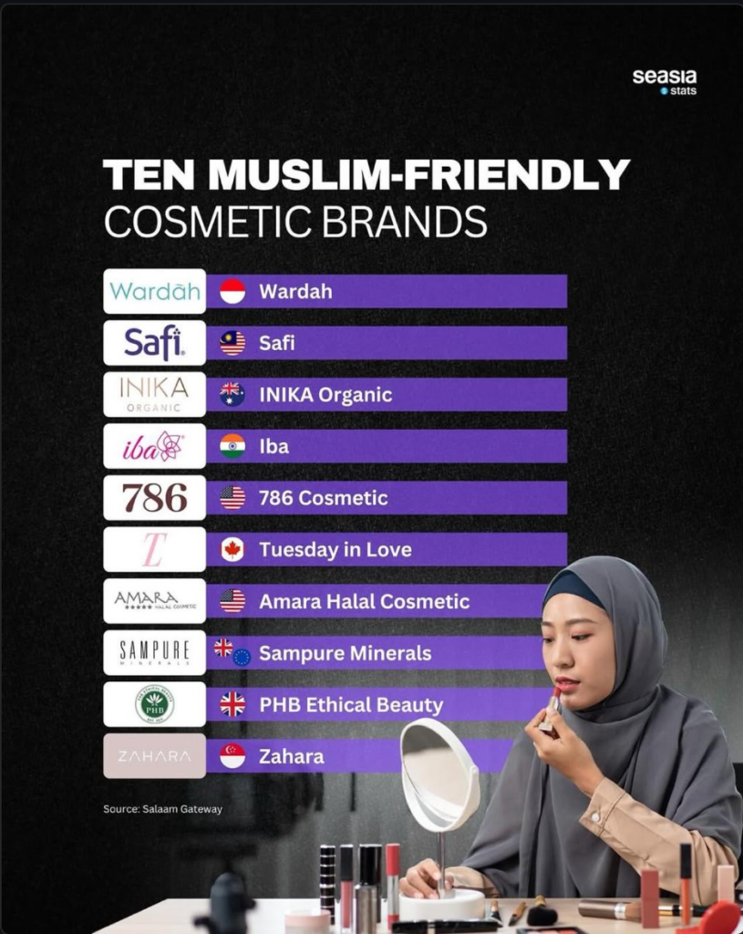 The top three Muslim-friendly cosmetic brands in the world are Wardah, Safi, and INIKA Organic